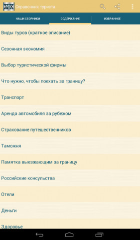 Это приложение-справочник поможет организовать не только летний, но и другой сезонный отдых. "Справочник туриста" поможет определиться с выбором тура, типом отдыха, страной и регионом. Также приложение "расскажет" какие гостиницы бывают, как правильно спланировать свой отдых, подобрать выгодный страховой полис и т.п.