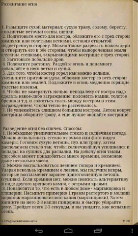 Программа поможет собрать походный рюкзак, научит, как разжечь костер, что делать если промокли спички, как выбрать место ночлега и защитить себя от диких животных. Все советы написаны понятно и подробна, единственный минус программы это реклама, которую, к сожалению, нельзя отключить.