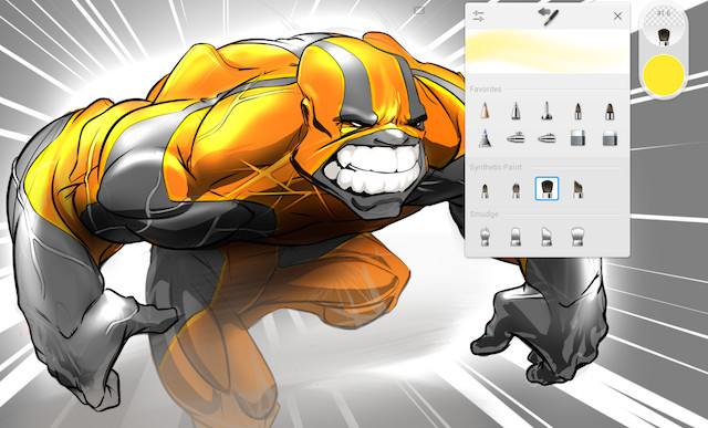 Отличается поддержкой фирменного стилуса, богатой коллекцией кистей и типов «холста». Есть некоторые забавные и даже уникальные эффекты (реалистичная водная поверхность, столь же реалистичные масляные краски». Очень интересна функция сохранения не только картинок-результатов, но и «сессий» их создания — для дальнейшего продолжения работы с возможностью отката к предыдущим этапам.