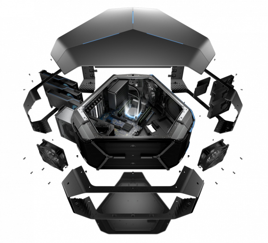 Также был анонсирован топовый игровой десктоп Dell Alienware Area 51, выполненный в крайне необычном формате усечённого треугольника (Hexagonal) с фирменным обозначением Triad. Внешний облик десктопа отлично впишется в любой киберпанковский интерьер и гармонично сочетается с игровыми устройствами Nvidia и Razor. Что же касается основных фишек Dell Alienware Area 51, тут стоит отметить продуманное расположение слотов расширения, качественно решённый вопрос питания и охлаждения компонентов, да и итоговая цена не сильно превышает сопоставимые конфигурации ручной сборки.