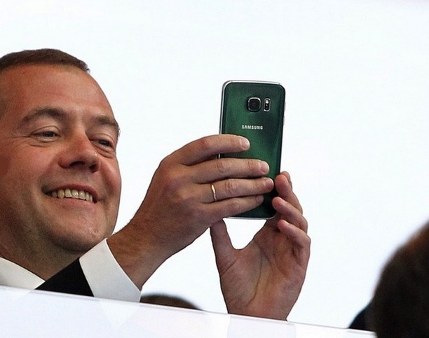 В прошлом году Д.А.Медведев экспериментировал с Samsung GALAXY S4, а в 2012 году у него был смартфон Nokiа, Что нового в 2015 году? Узнайте в нашей статье.