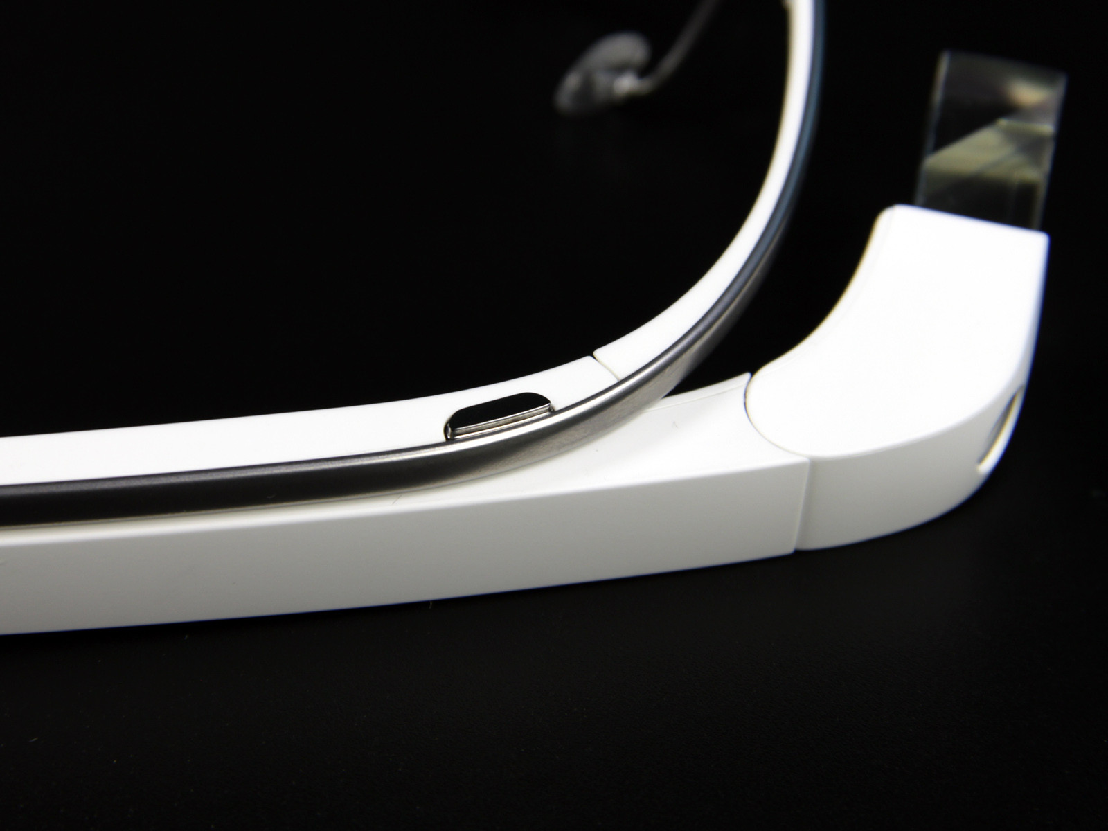 Невольно мы начинаем подходить к сценариям использования Google Glass раньше времени, а потому давайте лучше изучим управляющие элементы на корпусе. Самым массивным элементом выступает аккумуляторный блок устройства. Расположенный на кончике правой дужки этот блок прижимается к черепной кости над ухом, касаясь тела владельца уникальной клавишей - вибропроводником.