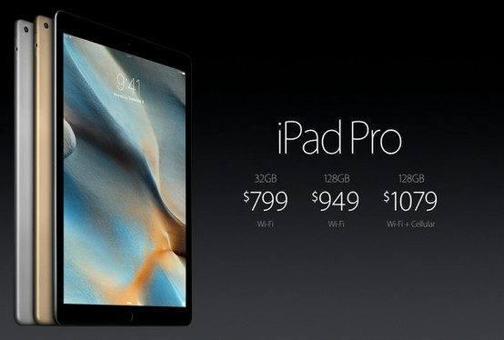 Что касается цен, то iPad Pro 32 GB будет стоит 799 USD, а 128 GB - 949 USD.