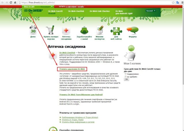 - Скачиваем программу по ссылке «Утилита удаления Dr. Web».