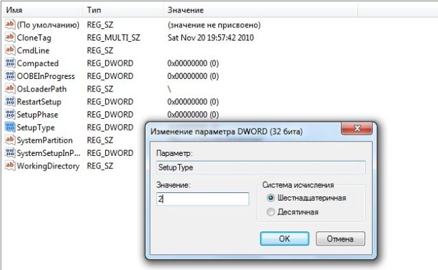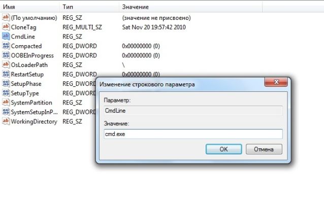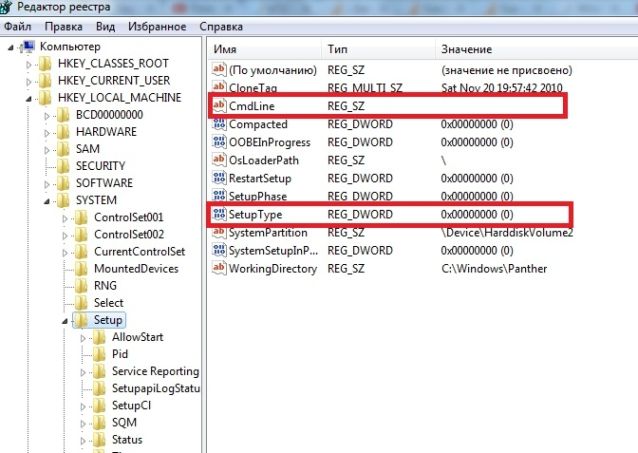 - В правой части окна нас интересуют CmdLine и SetupType.
