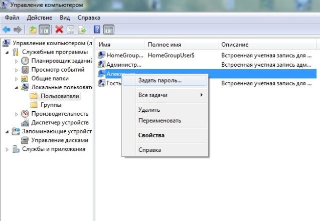 Выбрать в «Локальные пользователи» интересующую учетную запись. ![]()