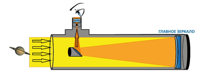 Как следует из их названия, в рефлекторах свет отражается в точку фокусировки (F) с помощью зеркал на основе оптики. Собранный свет отражается от главного параболического зеркала в меньшее вторичное зеркало, а затем отражается в окуляр./alcatel/570cc35fd6add.png)