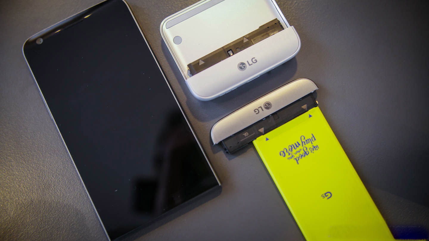 Большая особенность нового G5 — модульная конструкция. Нижняя часть телефона выдвигается подобно обойме в пистолете. Вы можете быстро поменять батарею, или использовать специальные модули от LG. Этот концепт довольно интересен. Проект «Ara» не оправдал своих ожиданий, а вот G5 это вполне удалось.
