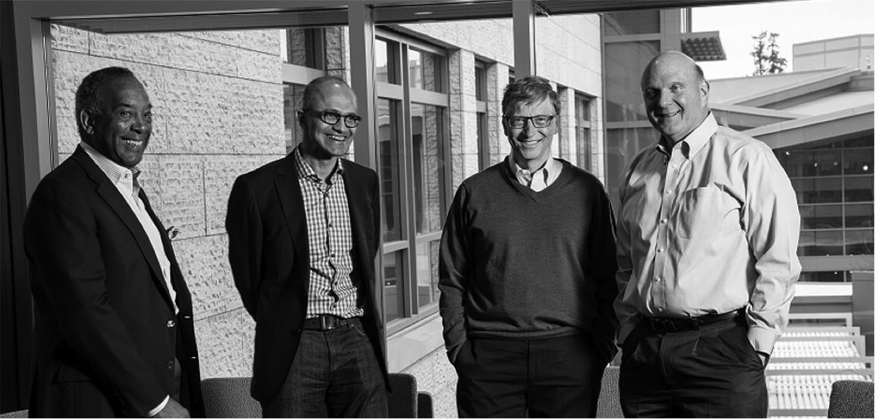 Джон Томпсон, Сатья Наделла, Билл Гейтс, Стив Балмер (слева направо).