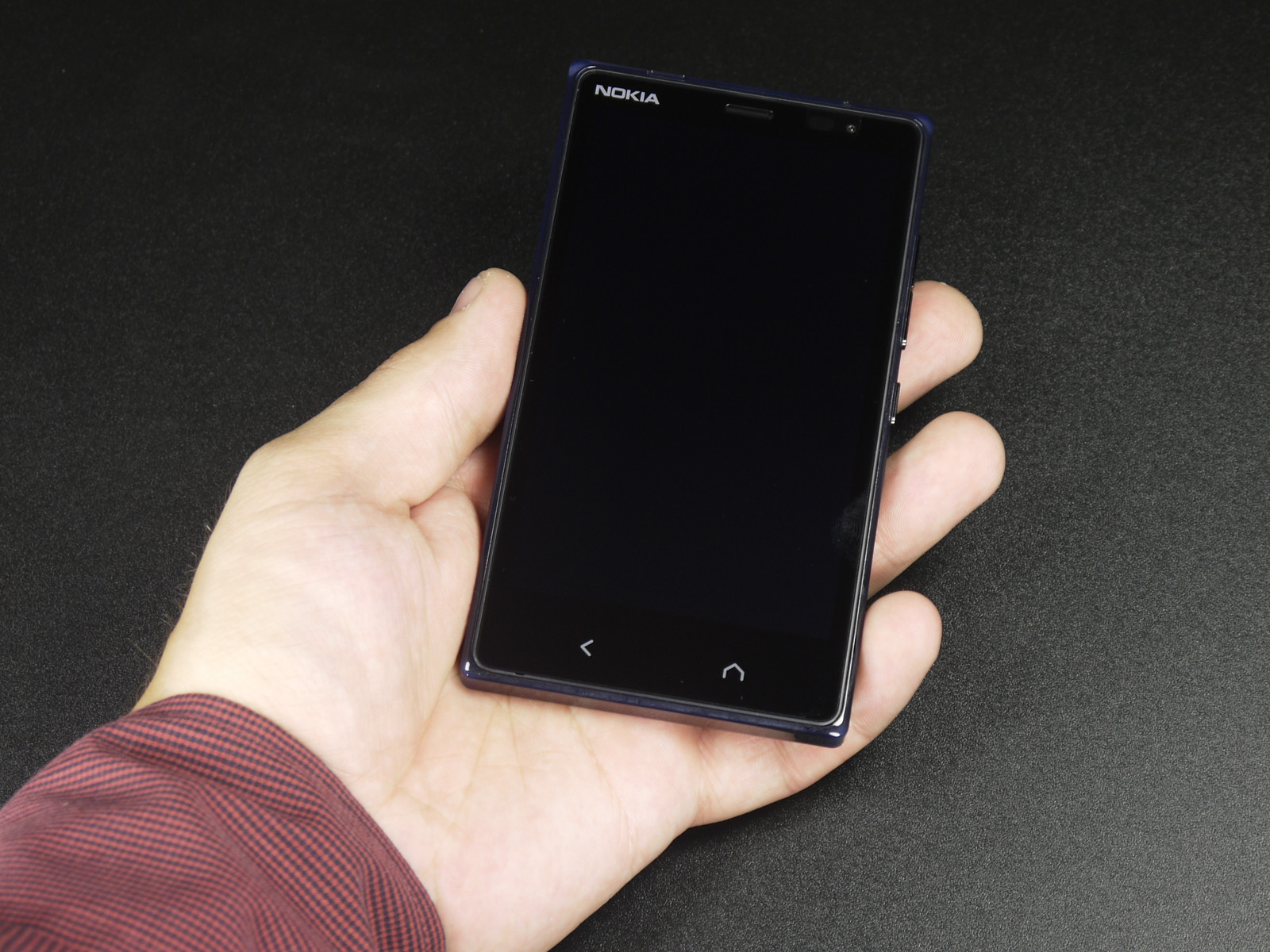По ощущениям Nokia X2 получился отлично сбалансированным моноблоком с высоким качеством сборки и подобранных материалов. Компактный глянцевый брусок отлично лежит в руке благодаря габаритам 121.7 x 68.3 x 11.1 мм, а вес 149 грамм формируют ощущение надёжности и основательности смартфона. Серьёзно, если сравнивать модель с конкурентами, Nokia X2 предлагает одно из лучших сочетаний внешности за свою цену.