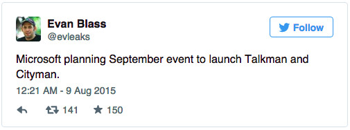 @evleaks утверждает, что оба смартфона — Cityman и Talkman выйдут уже в сентябре текущего года и станут первыми смартфонами на новой Windows 10 Mobile.