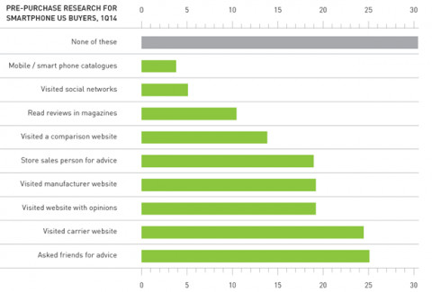 Перед походом в магазин 70% опрошенных читают отзывы, заходят на сайты производителей, интересуются мнением друзей и коллег, покупавших подобные смартфоны.