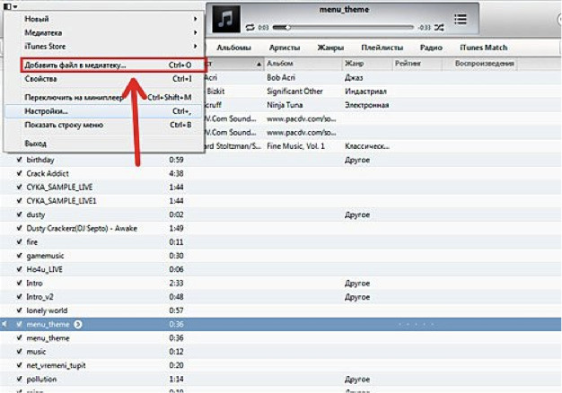 5) Теперь нам нужно добавить рингтон в медиатеку iTunes. В последнем, заходим по пути «Файл» > «Добавить в медиатеку» и добавляем ваш рингтон, выбрав его в уже знакомой папке «Ringtone».