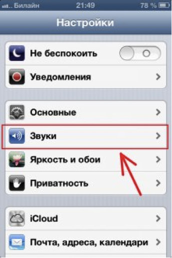 Берем наш iPhone. Заходим в «Настройки». Далее идем в раздел «Звуки».