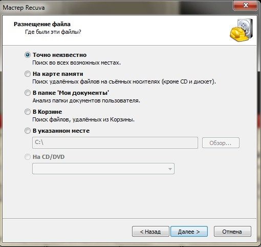 - Если вы знаете примерное месторасположение данных, укажите его. Если нет, оставьте все так, как есть.